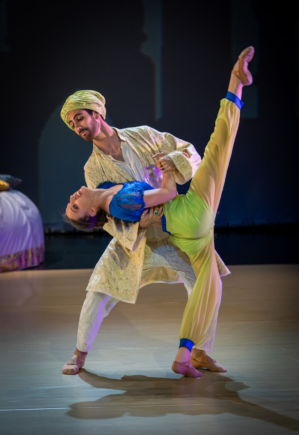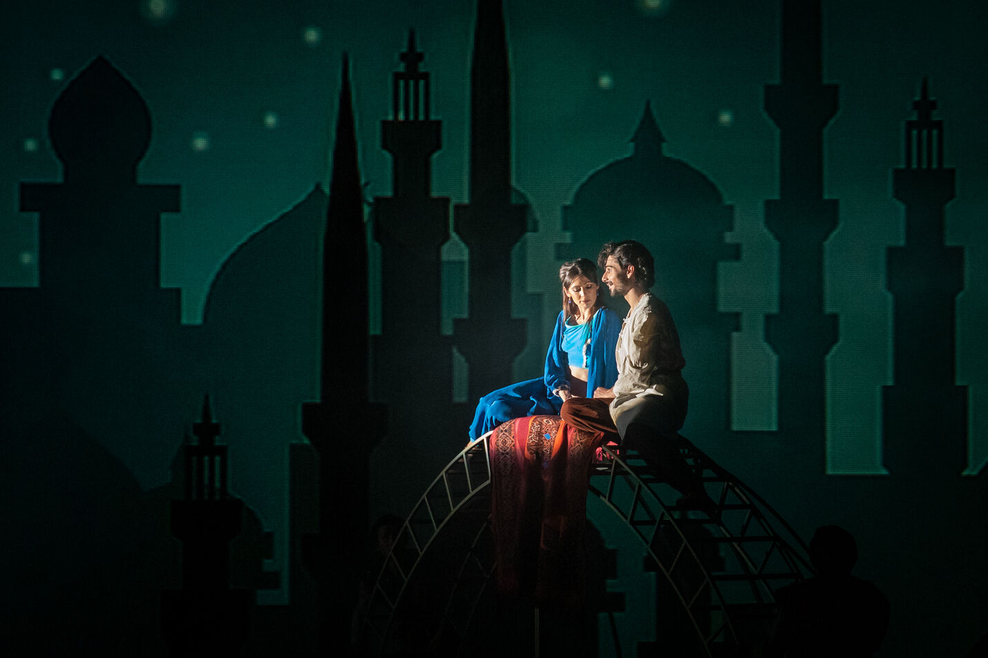 Aladdin, a tiszta szívű tolvaj fiú történetéről szól a mesénk, aki megpróbáltatásai során elnyeri a szépséges Jázmin hercegnő kezét. Varázsszőnyegünkön elrepítünk egy titokzatos arab birodalomba, ahol csodából és nevetésből nem lesz hiány. Izgalmas bazár, kincsekkel teli barlang, misztikus csodalámpa egy tréfás kedvű dzsinnel, pompás palota egy vajszívű szultánnal és egy hataloméhes udvari varázslóval – a jó és a rossz örök harca, a szegénység és a gazdagság találkozása.